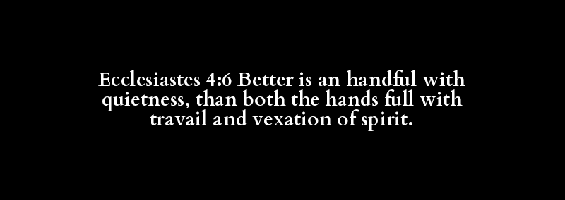 Ecclesiastes 4:6 Better is an handful with quietness, than both the hands full with travail and vexation of spirit.