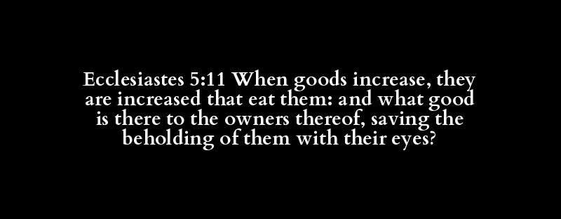 Ecclesiastes 5:11 When goods increase, they are increased that eat them: and what good is there to the owners thereof, saving the beholding of them with their eyes?
