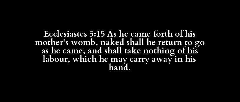 Ecclesiastes 5:15 As he came forth of his mother's womb, naked shall he return to go as he came, and shall take nothing of his labour, which he may carry away in his hand.