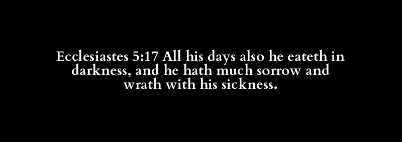 Ecclesiastes 5:17 All his days also he eateth in darkness, and he hath much sorrow and wrath with his sickness.
