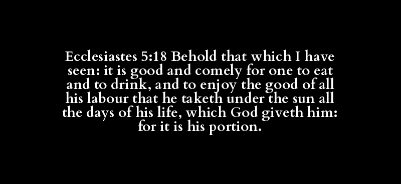 Ecclesiastes 5:18 Behold that which I have seen: it is good and comely for one to eat and to drink, and to enjoy the good of all his labour that he taketh under the sun all the days of his life, which God giveth him: for it is his portion.