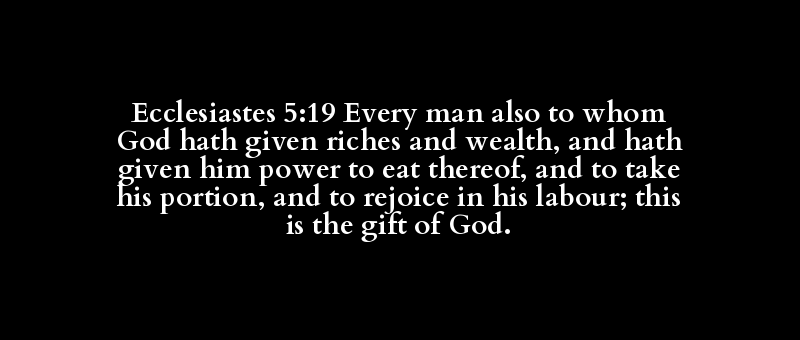 Ecclesiastes 5:19 Every man also to whom God hath given riches and wealth, and hath given him power to eat thereof, and to take his portion, and to rejoice in his labour; this is the gift of God.