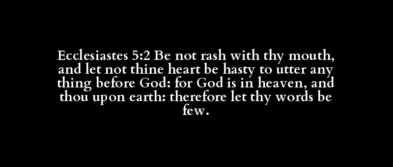 Ecclesiastes 5:2 Be not rash with thy mouth, and let not thine heart be hasty to utter any thing before God: for God is in heaven, and thou upon earth: therefore let thy words be few.
