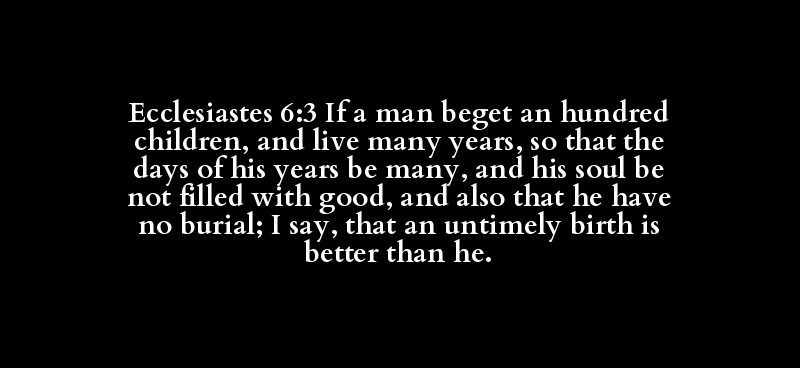Ecclesiastes 6:3 If a man beget an hundred children, and live many years, so that the days of his years be many, and his soul be not filled with good, and also that he have no burial; I say, that an untimely birth is better than he.