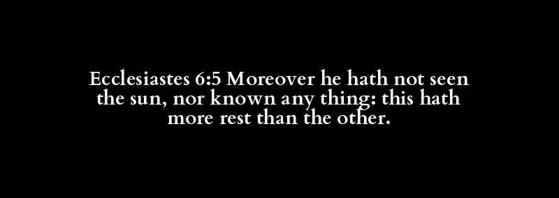 Ecclesiastes 6:5 Moreover he hath not seen the sun, nor known any thing: this hath more rest than the other.