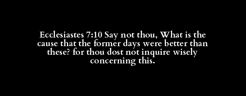 Ecclesiastes 7:10 Say not thou, What is the cause that the former days were better than these? for thou dost not inquire wisely concerning this.
