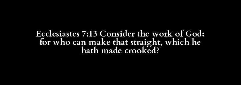 Ecclesiastes 7:13 Consider the work of God: for who can make that straight, which he hath made crooked?