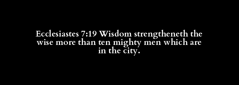 Ecclesiastes 7:19 Wisdom strengtheneth the wise more than ten mighty men which are in the city.