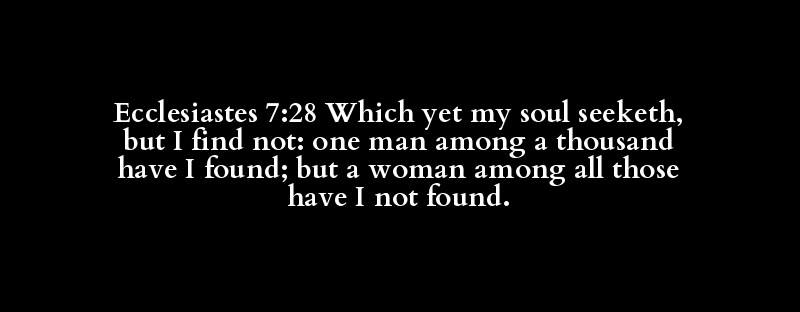 Ecclesiastes 7:28 Which yet my soul seeketh, but I find not: one man among a thousand have I found; but a woman among all those have I not found.