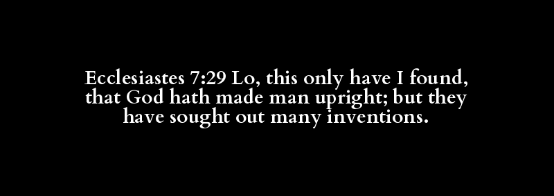 Ecclesiastes 7:29 Lo, this only have I found, that God hath made man upright; but they have sought out many inventions.
