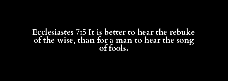 Ecclesiastes 7:5 It is better to hear the rebuke of the wise, than for a man to hear the song of fools.