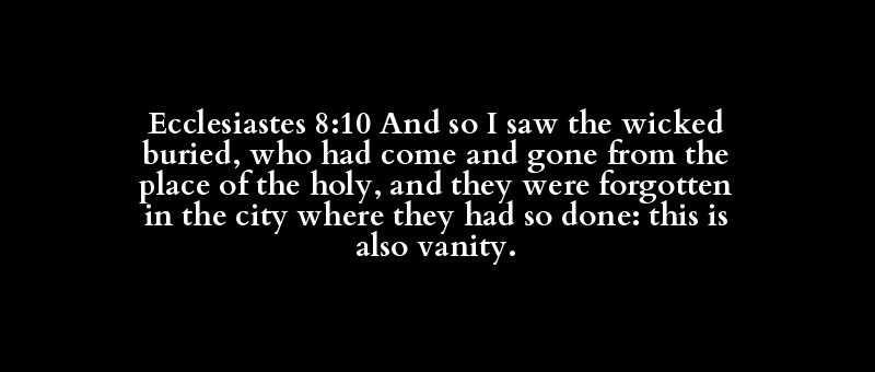 Ecclesiastes 8:10 And so I saw the wicked buried, who had come and gone from the place of the holy, and they were forgotten in the city where they had so done: this is also vanity.