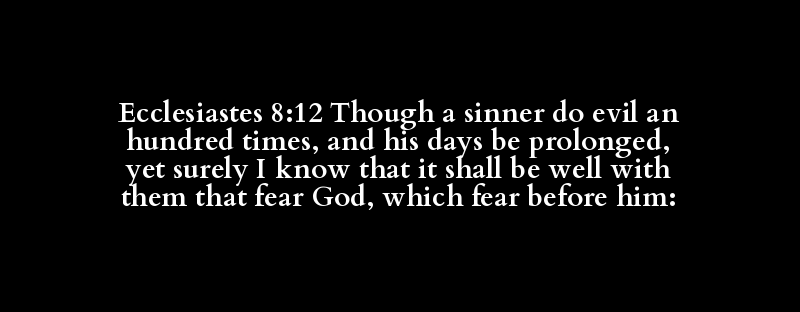 Ecclesiastes 8:12 Though a sinner do evil an hundred times, and his days be prolonged, yet surely I know that it shall be well with them that fear God, which fear before him: