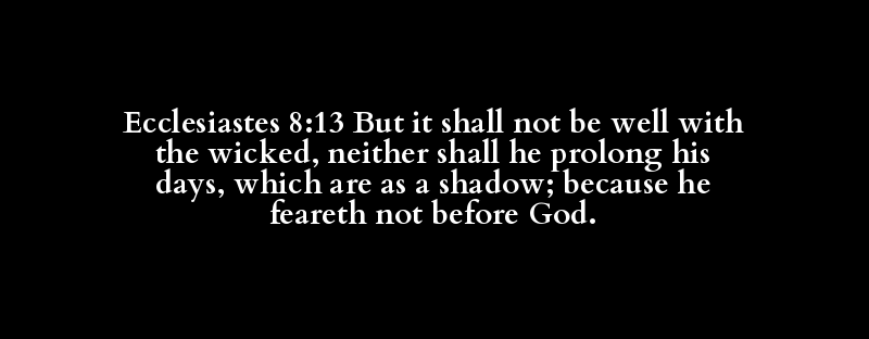 Ecclesiastes 8:13 But it shall not be well with the wicked, neither shall he prolong his days, which are as a shadow; because he feareth not before God.