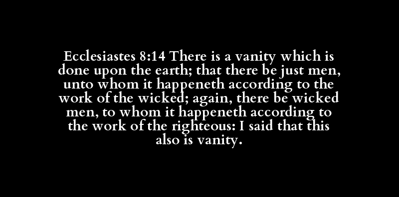 Ecclesiastes 8:14 There is a vanity which is done upon the earth; that there be just men, unto whom it happeneth according to the work of the wicked; again, there be wicked men, to whom it happeneth according to the work of the righteous: I said that this also is vanity.