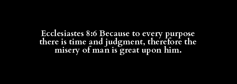 Ecclesiastes 8:6 Because to every purpose there is time and judgment, therefore the misery of man is great upon him.