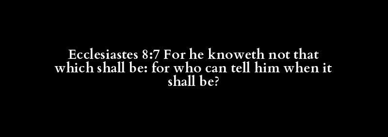 Ecclesiastes 8:7 For he knoweth not that which shall be: for who can tell him when it shall be?