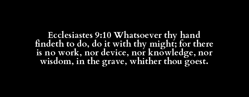 Ecclesiastes 9:10 Whatsoever thy hand findeth to do, do it with thy might; for there is no work, nor device, nor knowledge, nor wisdom, in the grave, whither thou goest.