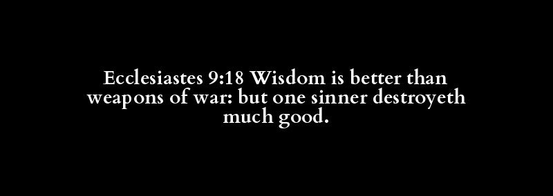 Ecclesiastes 9:18 Wisdom is better than weapons of war: but one sinner destroyeth much good.