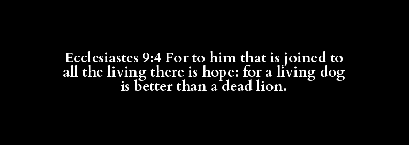 Ecclesiastes 9:4 For to him that is joined to all the living there is hope: for a living dog is better than a dead lion.