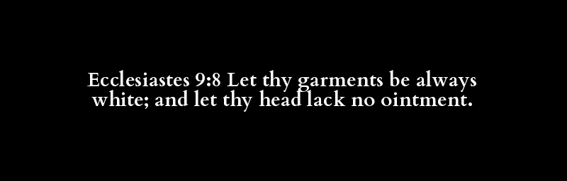 Ecclesiastes 9:8 Let thy garments be always white; and let thy head lack no ointment.