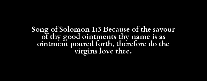Song of Solomon 1:3 Because of the savour of thy good ointments thy name is as ointment poured forth, therefore do the virgins love thee.