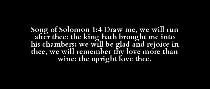 Song of Solomon 1:4 Draw me, we will run after thee: the king hath brought me into his chambers: we will be glad and rejoice in thee, we will remember thy love more than wine: the upright love thee.