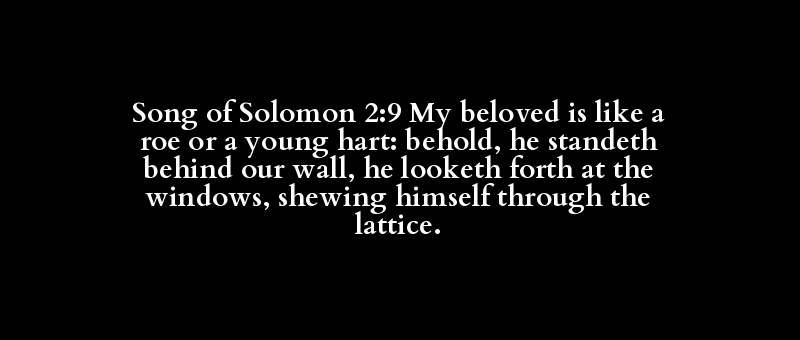 Song of Solomon 2:9 My beloved is like a roe or a young hart: behold, he standeth behind our wall, he looketh forth at the windows, shewing himself through the lattice.