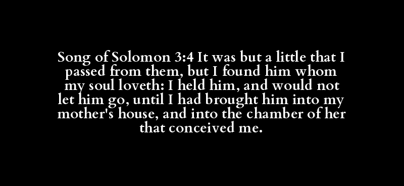Song of Solomon 3:4 It was but a little that I passed from them, but I found him whom my soul loveth: I held him, and would not let him go, until I had brought him into my mother's house, and into the chamber of her that conceived me.