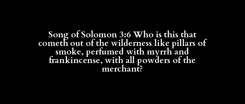 Song of Solomon 3:6 Who is this that cometh out of the wilderness like pillars of smoke, perfumed with myrrh and frankincense, with all powders of the merchant?