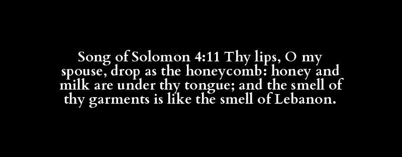 Song of Solomon 4:11 Thy lips, O my spouse, drop as the honeycomb: honey and milk are under thy tongue; and the smell of thy garments is like the smell of Lebanon.
