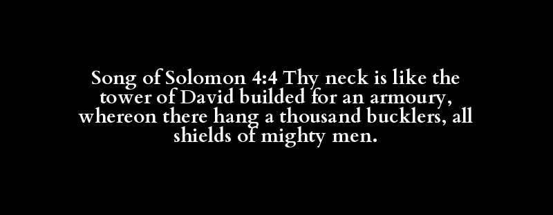 Song of Solomon 4:4 Thy neck is like the tower of David builded for an armoury, whereon there hang a thousand bucklers, all shields of mighty men.