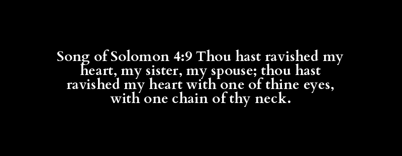Song of Solomon 4:9 Thou hast ravished my heart, my sister, my spouse; thou hast ravished my heart with one of thine eyes, with one chain of thy neck.