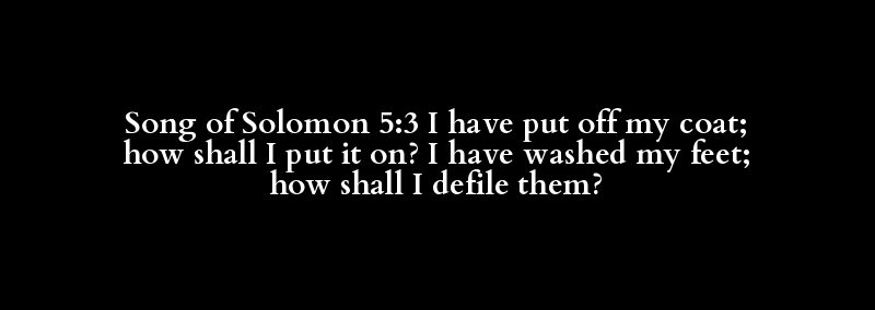 Song of Solomon 5:3 I have put off my coat; how shall I put it on? I have washed my feet; how shall I defile them?