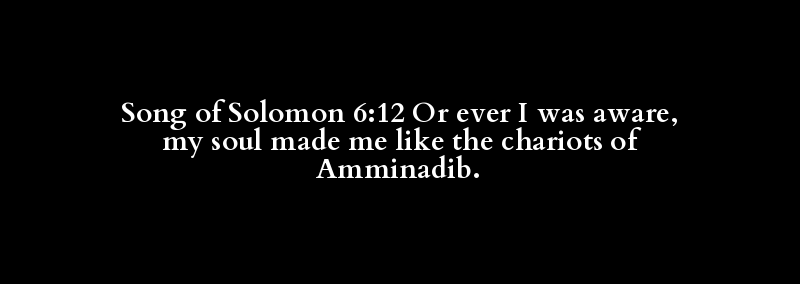 Song of Solomon 6:12 Or ever I was aware, my soul made me like the chariots of Amminadib.