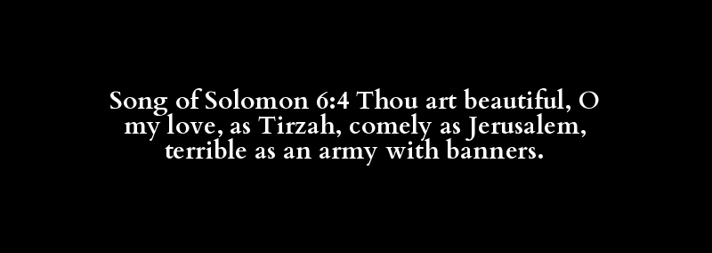 Song of Solomon 6:4 Thou art beautiful, O my love, as Tirzah, comely as Jerusalem, terrible as an army with banners.