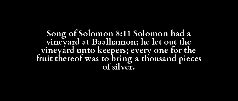 Song of Solomon 8:11 Solomon had a vineyard at Baalhamon; he let out the vineyard unto keepers; every one for the fruit thereof was to bring a thousand pieces of silver.