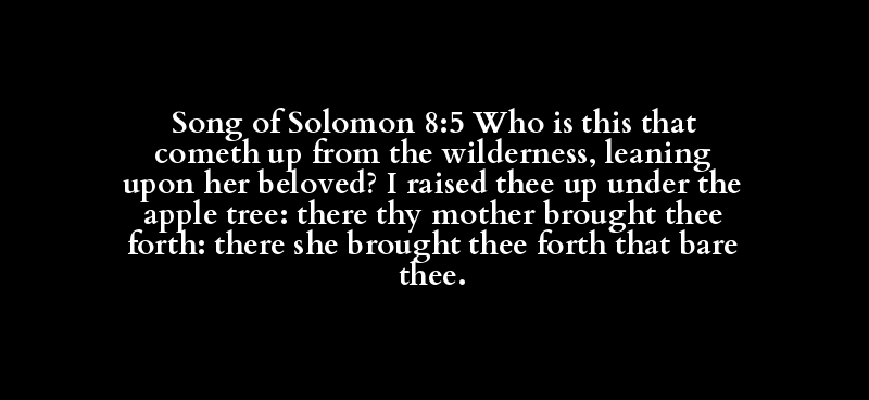 Song of Solomon 8:5 Who is this that cometh up from the wilderness, leaning upon her beloved? I raised thee up under the apple tree: there thy mother brought thee forth: there she brought thee forth that bare thee.
