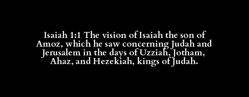 Isaiah 1:1 The vision of Isaiah the son of Amoz, which he saw concerning Judah and Jerusalem in the days of Uzziah, Jotham, Ahaz, and Hezekiah, kings of Judah.