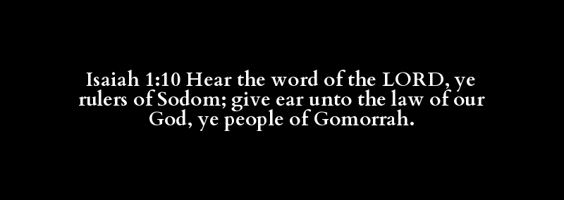 Isaiah 1:10 Hear the word of the LORD, ye rulers of Sodom; give ear unto the law of our God, ye people of Gomorrah.