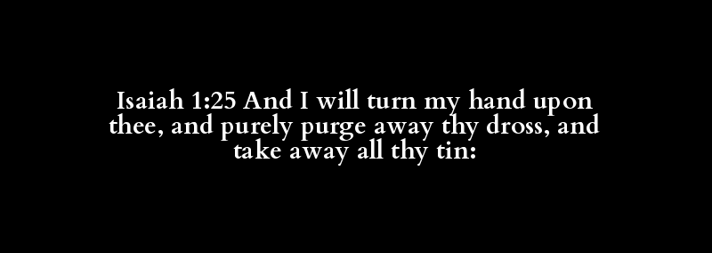 Isaiah 1:25 And I will turn my hand upon thee, and purely purge away thy dross, and take away all thy tin: