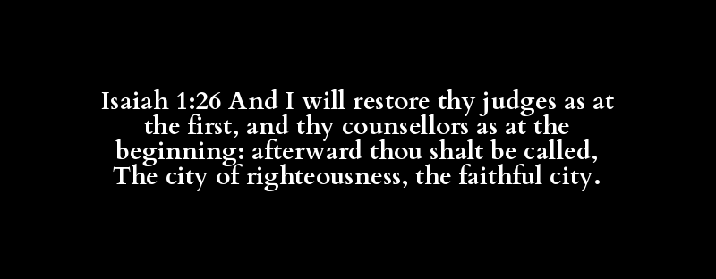 Isaiah 1:26 And I will restore thy judges as at the first, and thy counsellors as at the beginning: afterward thou shalt be called, The city of righteousness, the faithful city.