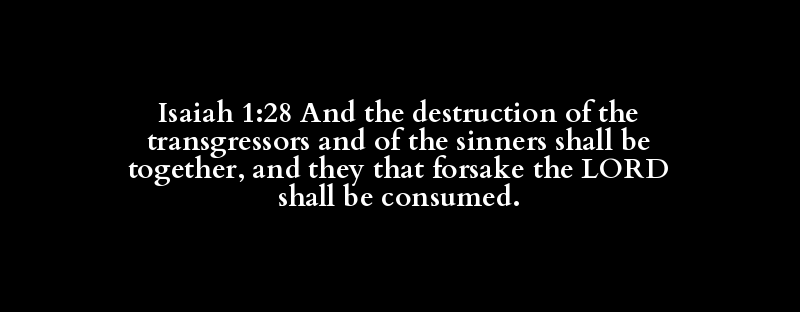 Isaiah 1:28 And the destruction of the transgressors and of the sinners shall be together, and they that forsake the LORD shall be consumed.