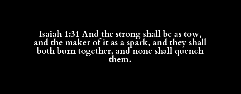 Isaiah 1:31 And the strong shall be as tow, and the maker of it as a spark, and they shall both burn together, and none shall quench them.