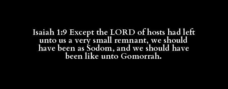 Isaiah 1:9 Except the LORD of hosts had left unto us a very small remnant, we should have been as Sodom, and we should have been like unto Gomorrah.