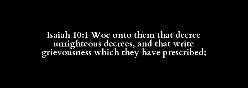 Isaiah 10:1 Woe unto them that decree unrighteous decrees, and that write grievousness which they have prescribed;
