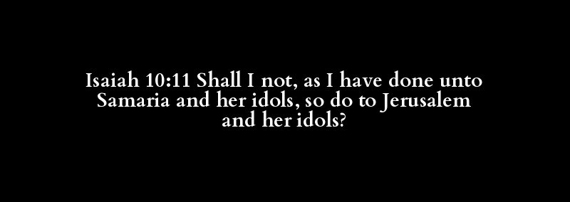 Isaiah 10:11 Shall I not, as I have done unto Samaria and her idols, so do to Jerusalem and her idols?