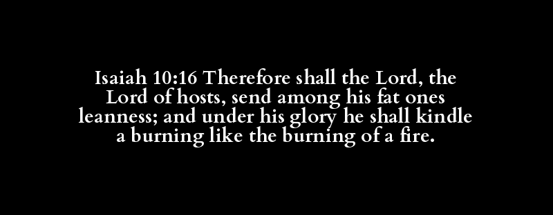 Isaiah 10:16 Therefore shall the Lord, the Lord of hosts, send among his fat ones leanness; and under his glory he shall kindle a burning like the burning of a fire.