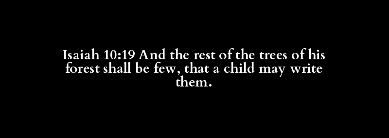 Isaiah 10:19 And the rest of the trees of his forest shall be few, that a child may write them.