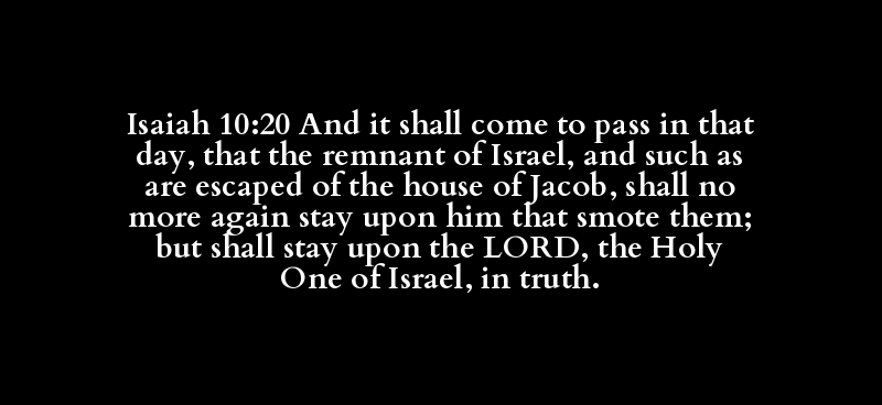 Isaiah 10:20 And it shall come to pass in that day, that the remnant of Israel, and such as are escaped of the house of Jacob, shall no more again stay upon him that smote them; but shall stay upon the LORD, the Holy One of Israel, in truth.